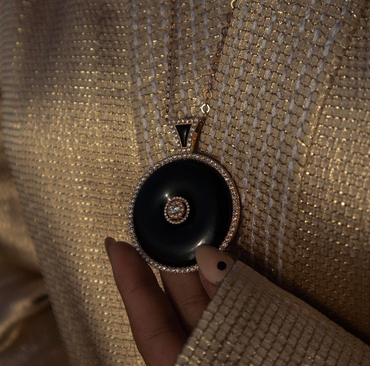 Merve Dizdar wearing Terzihan Limited Edition Onyx Dome Cuff.