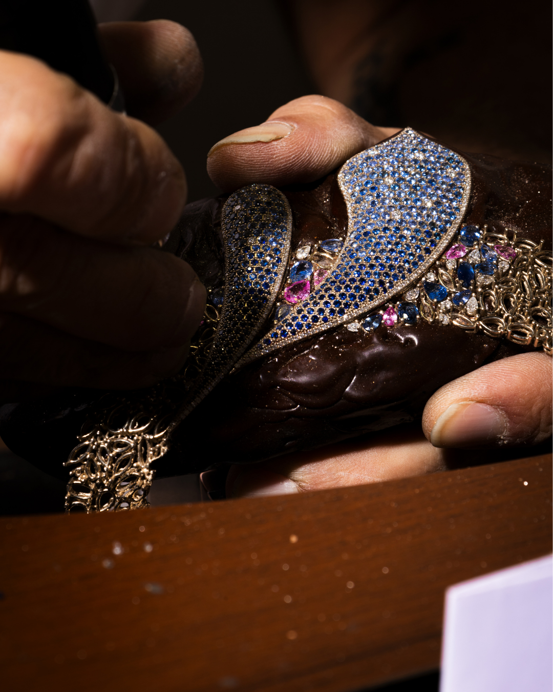 Drawing inspiration from the natural journey of change, this exquisite piece features a harmonious blend of blue and pink sapphires, symbolizing serenity and passion, respectively. These vibrant gemstones are thoughtfully accented by radiant diamonds, representing clarity and strength, tying the design into a perfect balance of beauty and resilience.
