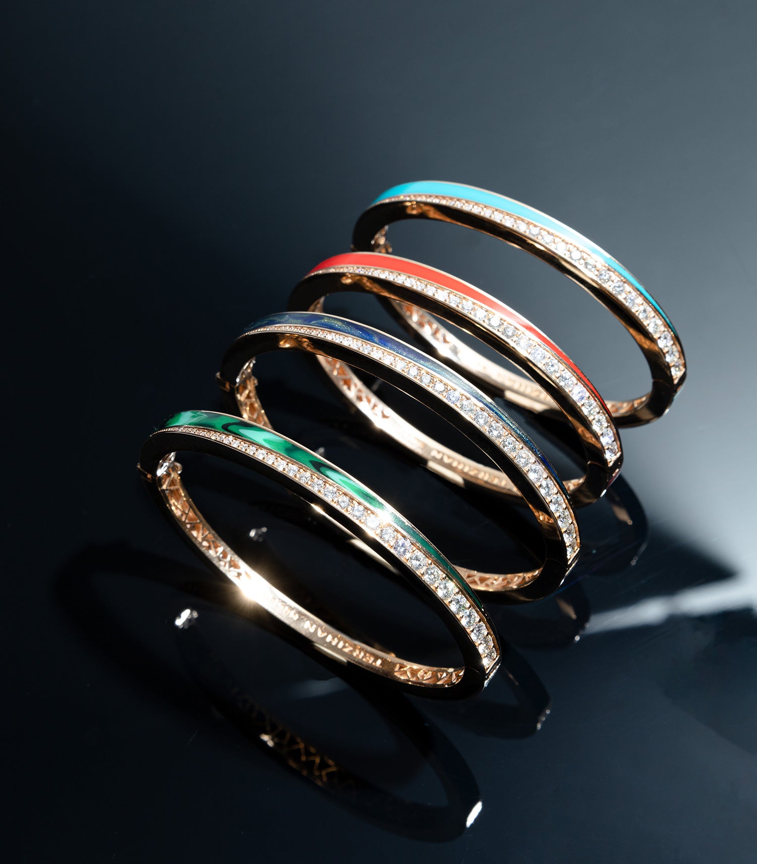 A simplistic design with it's vibrant enamel colors and alluring diamonds to get you through the flow of everyday.