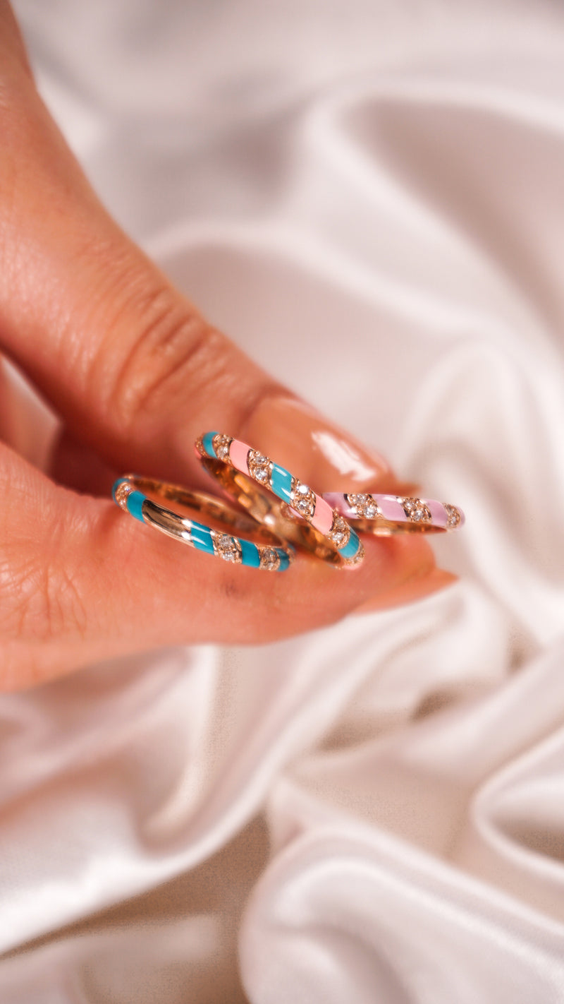 0.35 CTS F VS DIAMONDS, HANDMADE ENAMEL WORK, 18K ROSE GOLD